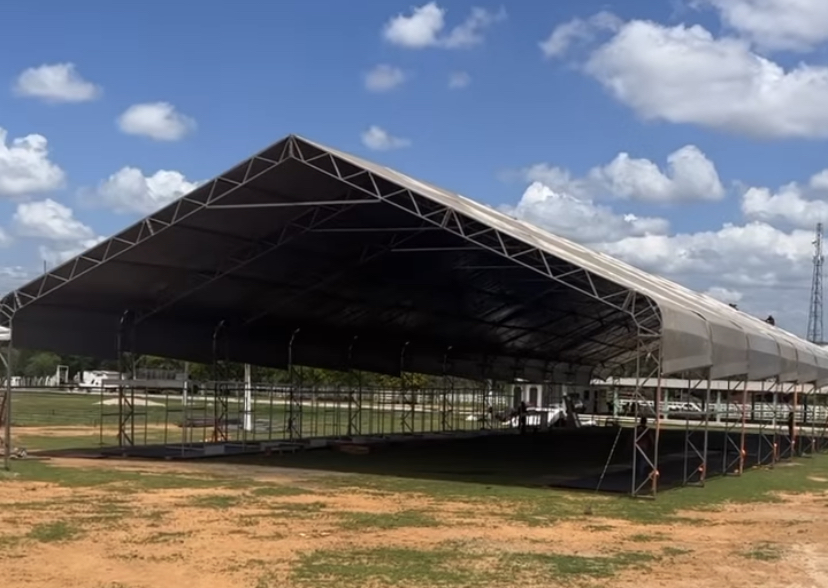 Estrutura da praça de alimentação e exposições já está sendo montada