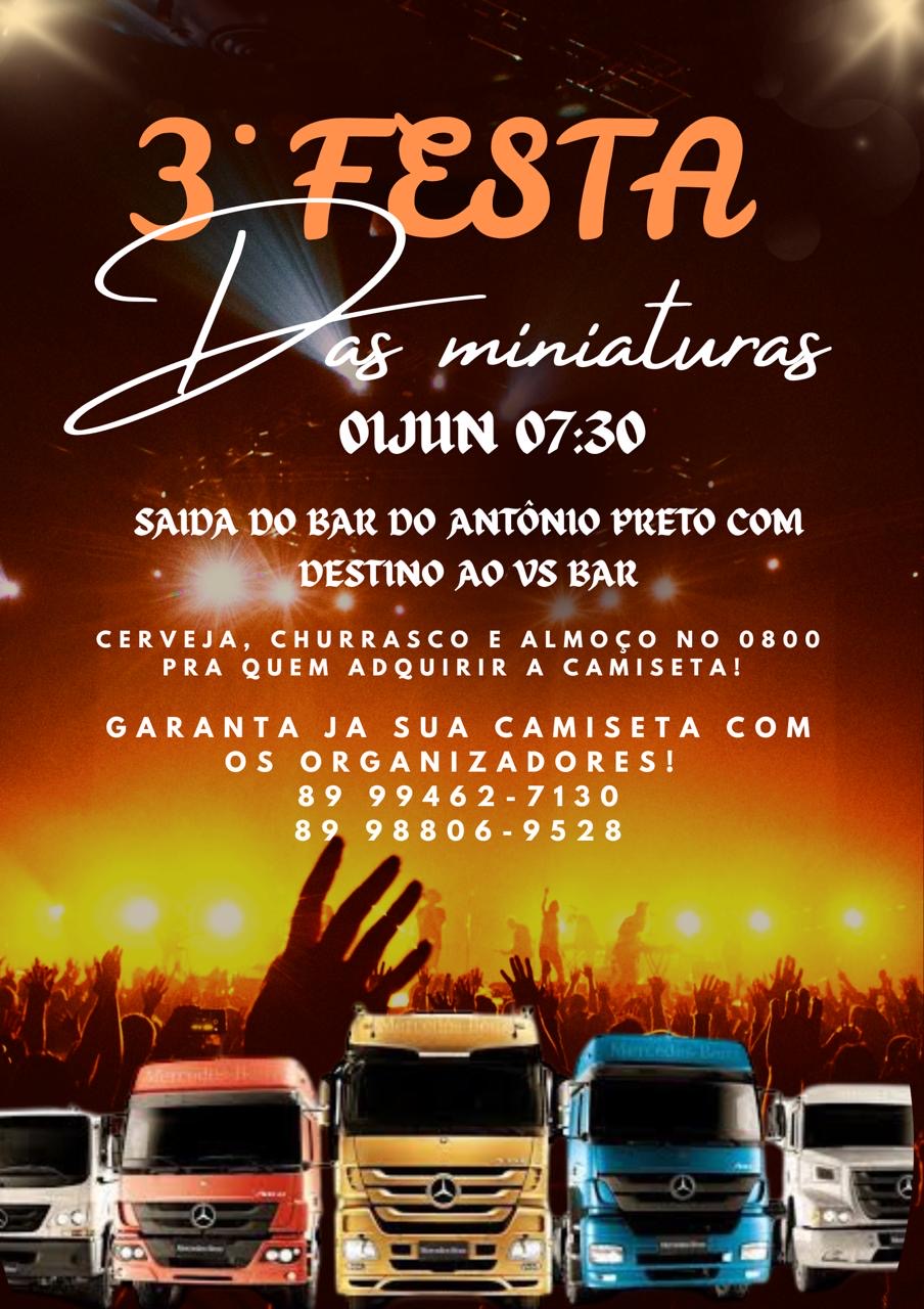 A cidade de Dom Expedito Lopes será palco, neste domingo (1º), da 3ª edição da Festa dos Miniaturas, um evento que reúne apaixonados por caminhões em miniatura e movimenta a cultura local com muita música, confraternização e tradição.