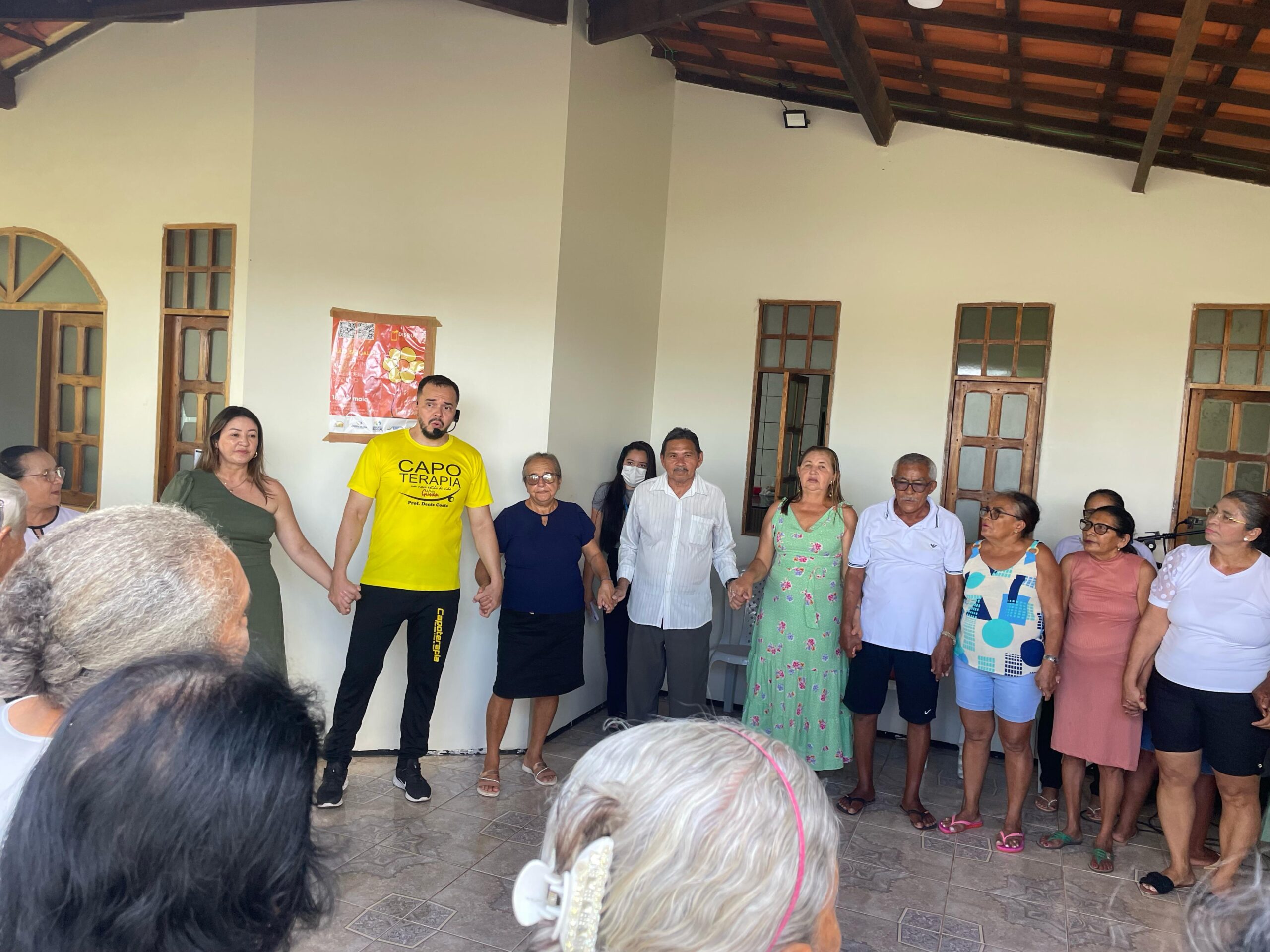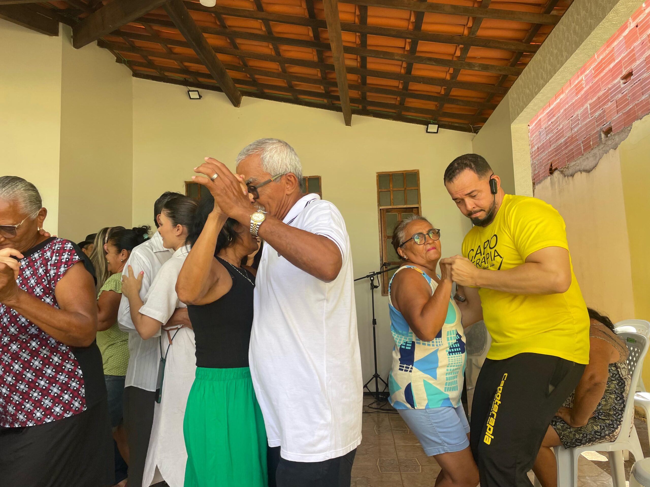 Um dos pontos altos da manhã foi a participação do professor Denis Costa, que conduziu uma animada sessão de capoterapia – técnica que mescla elementos da capoeira com exercícios físicos adaptados para idosos. A atividade arrancou sorrisos, despertou a energia do grupo e reforçou a importância do movimento na promoção da saúde.