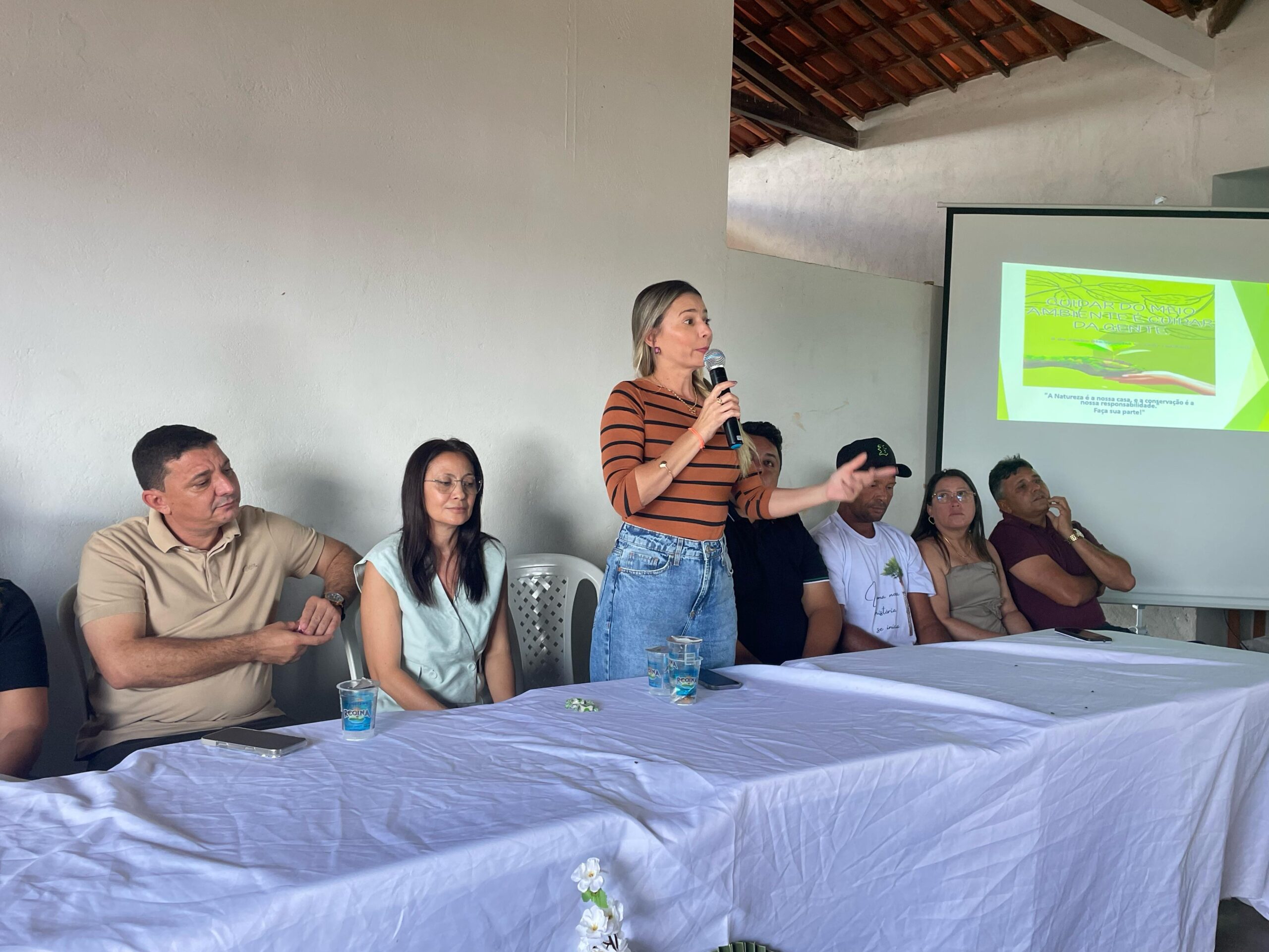 Durante a solenidade, os participantes acompanharam uma palestra sobre os impactos ambientais e a importância da sustentabilidade, ministrada pelos profissionais William Mendes e Claudene Fontes, que abordaram temas essenciais como a preservação dos recursos naturais, o papel da sociedade e os desafios enfrentados por municípios de pequeno porte.