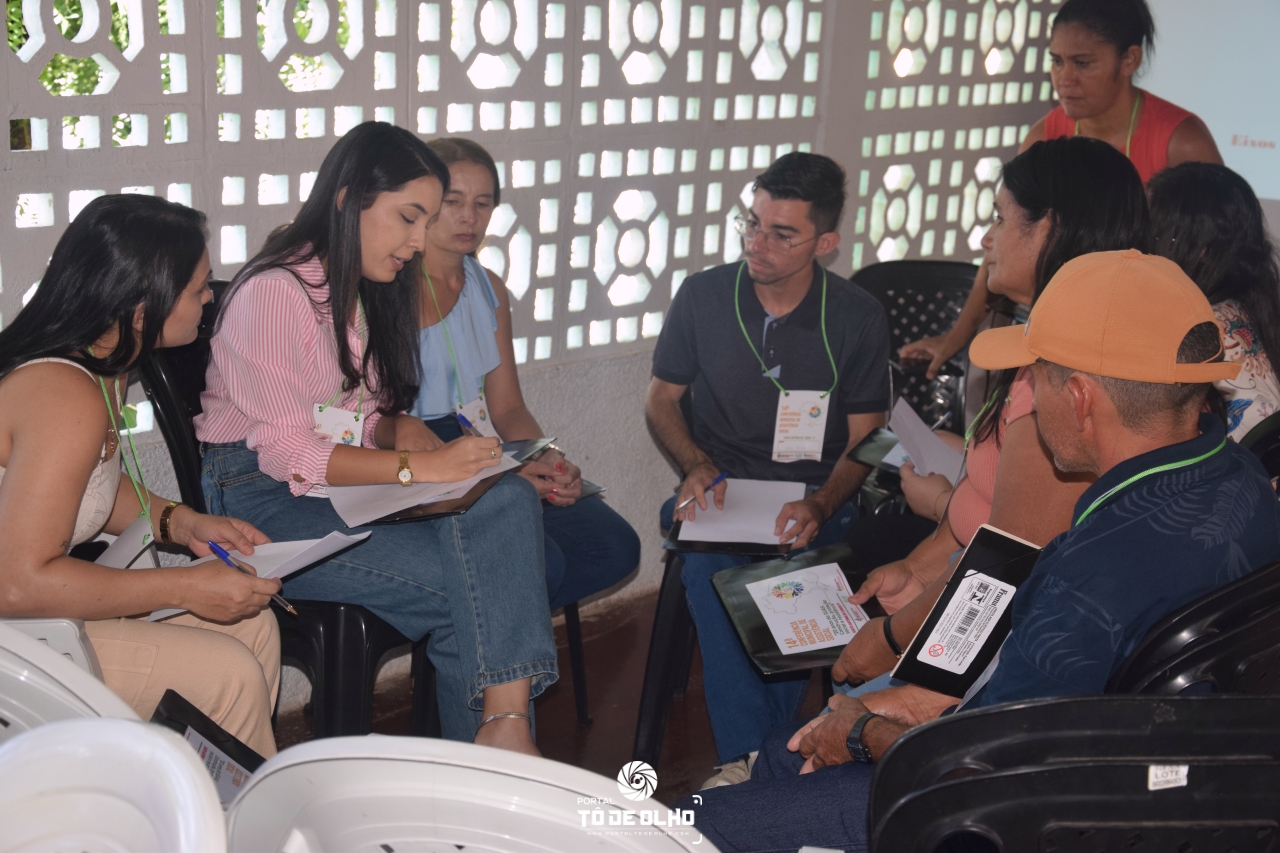 Durante a programação, os participantes se dividiram para debater os cinco eixos temáticos definidos a nível nacional, com o objetivo de construir propostas que serão levadas às etapas seguintes da conferência: