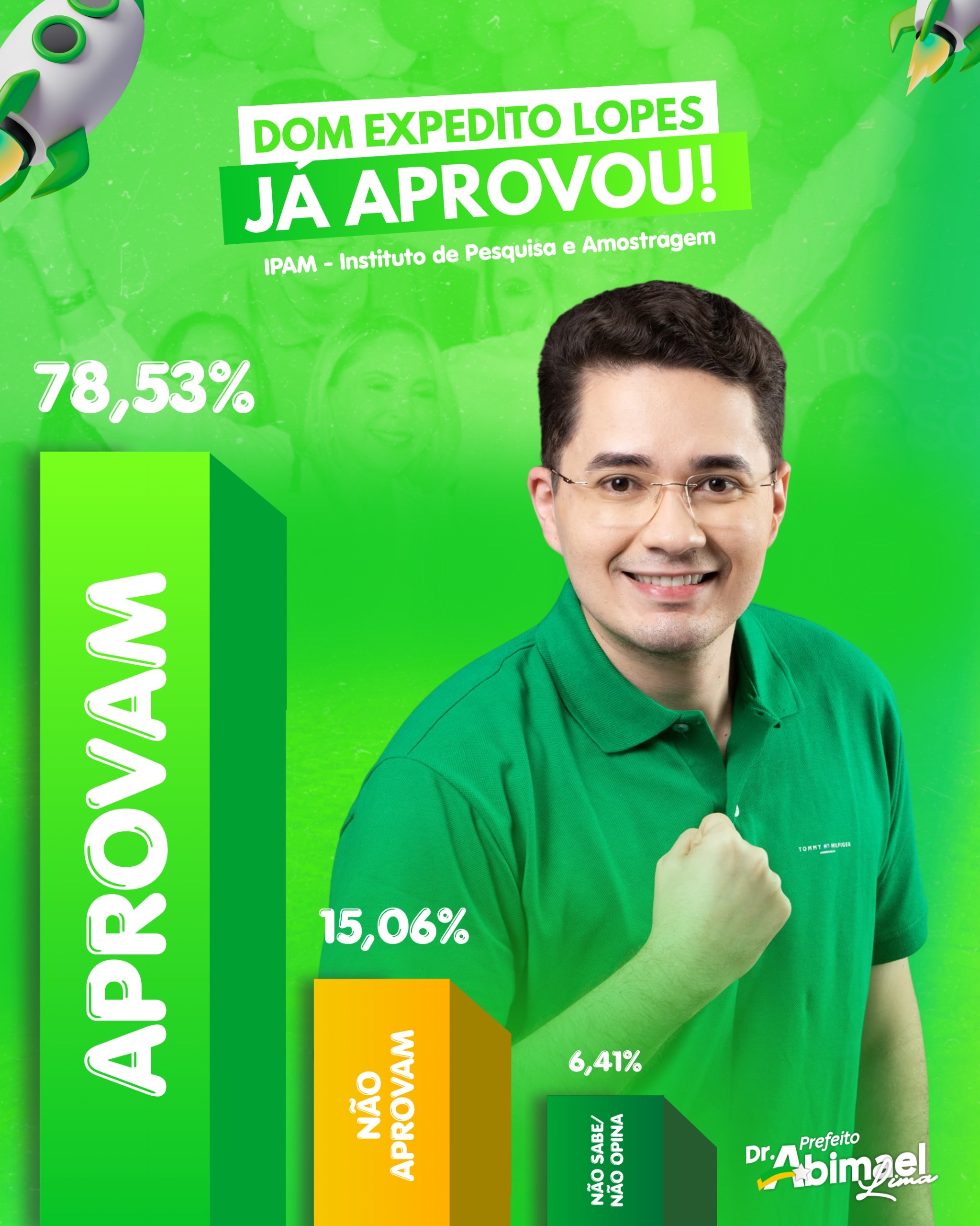 Uma pesquisa realizada pelo IPAM – Instituto de Pesquisa e Amostragem nos dias 02 e 03 de agosto de 2025 revela que a gestão do prefeito Dr. Abimael Lima, de Dom Expedito Lopes (PI), possui um alto índice de aprovação popular. De acordo com o levantamento, 78,53% dos entrevistados aprovam a administração municipal.