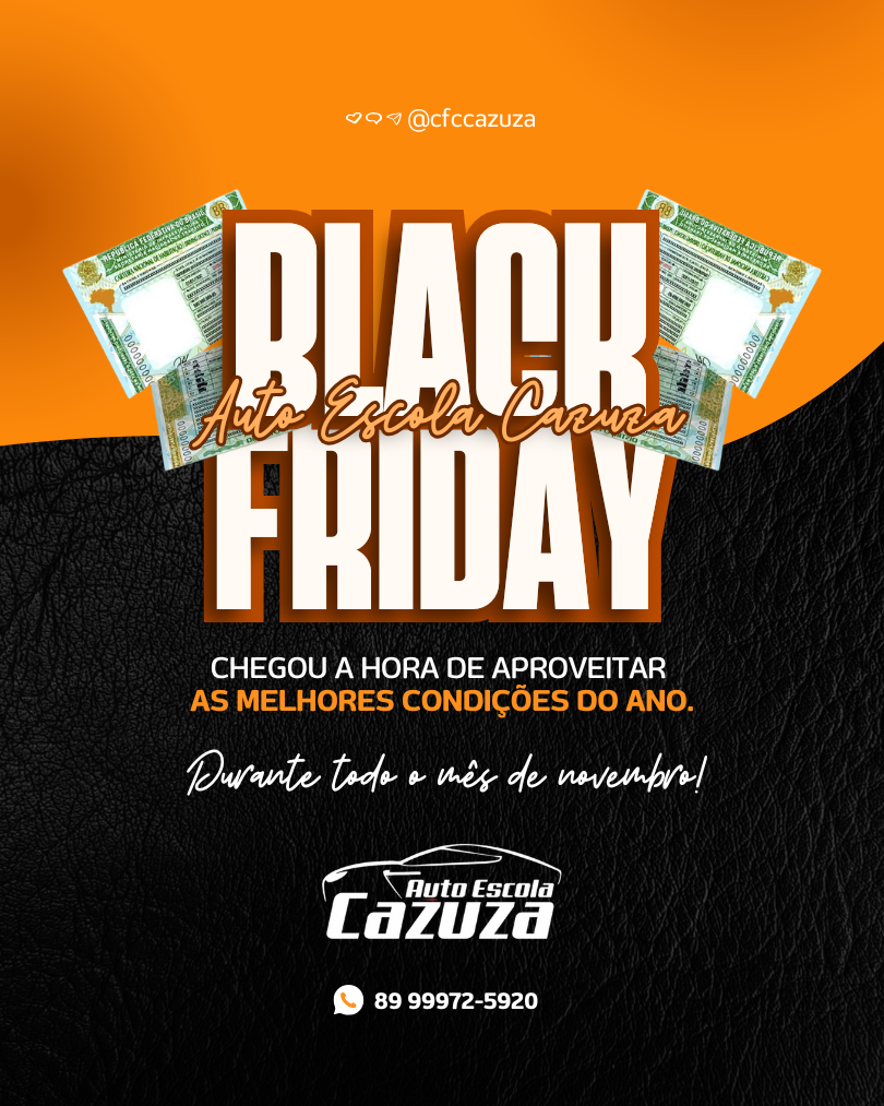 A Auto Escola Cazuza deu início à sua aguardada Black Friday 2025, oferecendo as melhores condições do ano e descontos especiais em todas as categorias de habilitação. A campanha segue durante todo o mês de novembro, proporcionando uma oportunidade imperdível para quem deseja conquistar a tão sonhada Carteira Nacional de Habilitação (CNH) com economia, qualidade e segurança.