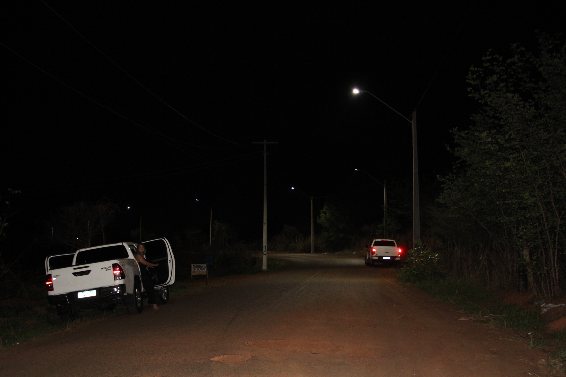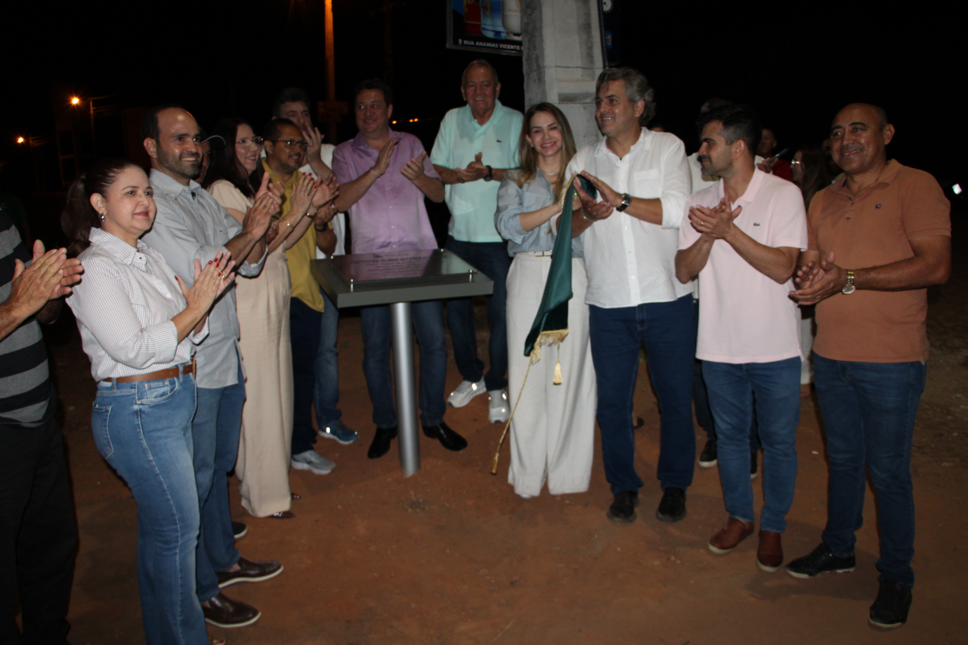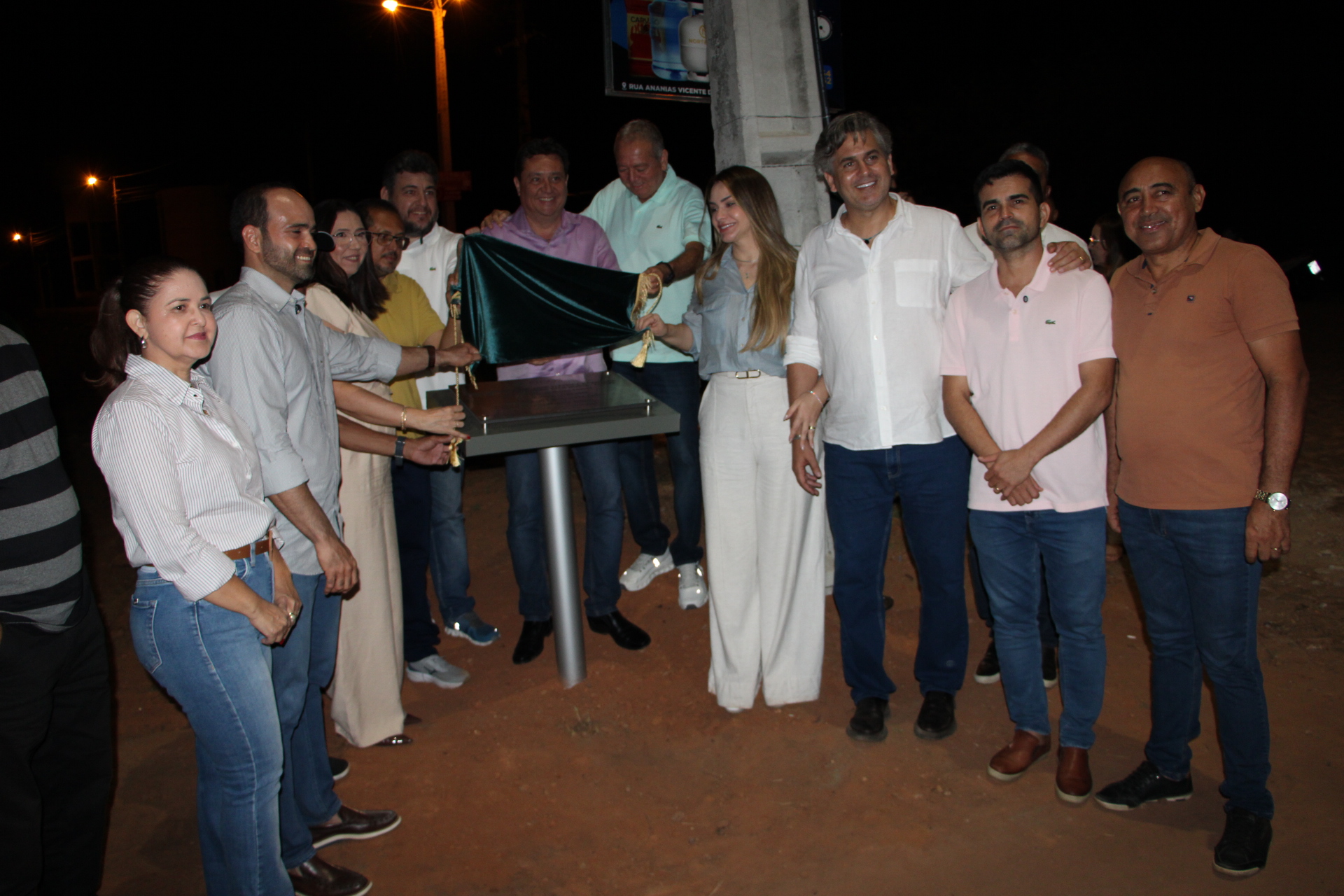Dr. Pablo Santos e comitiva inaugurando sistema de iluminação no bairro Ipueiras