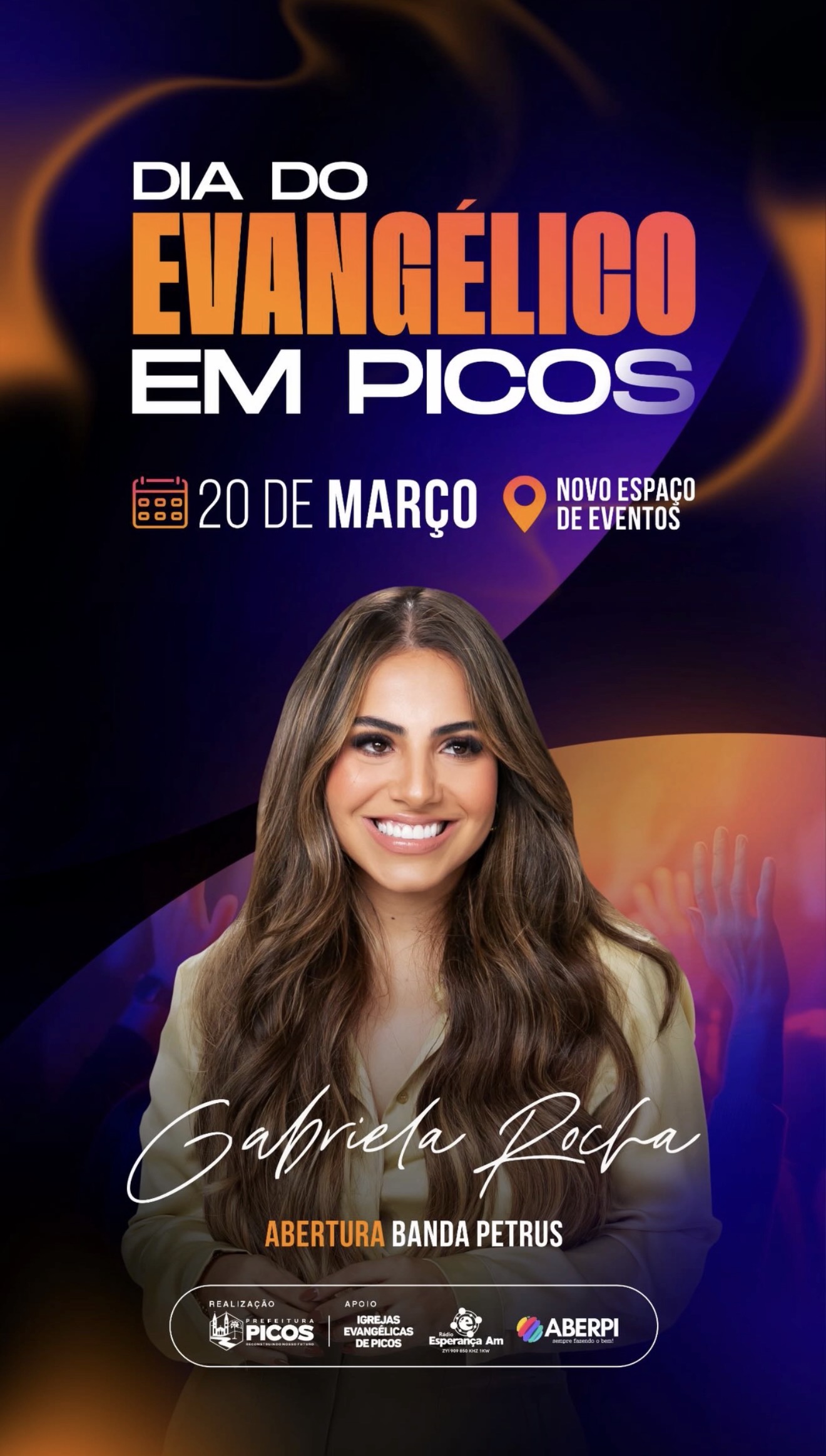 O prefeito Pablo Santos anunciou oficialmente a realização do Dia do Evangélico no município de Picos, confirmando a cantora Gabriela Rocha como atração do evento. A celebração está marcada para o dia 20 de março e deverá reunir fiéis de diversas denominações cristãs.