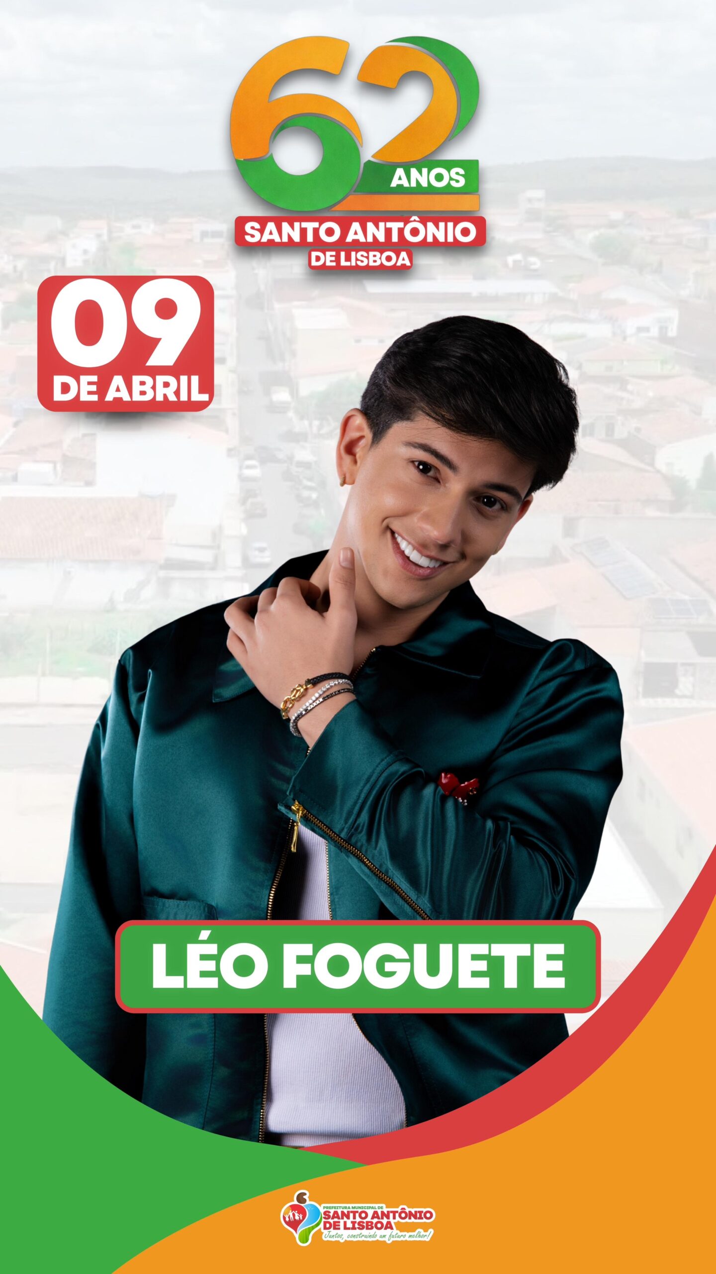 O prefeito Erivaldo Lopes anunciou a segunda atração confirmada para as comemorações dos 62 anos de Santo Antônio de Lisboa. Trata-se do cantor Léo Foguete, que promete animar o público com um repertório repleto de sucessos.