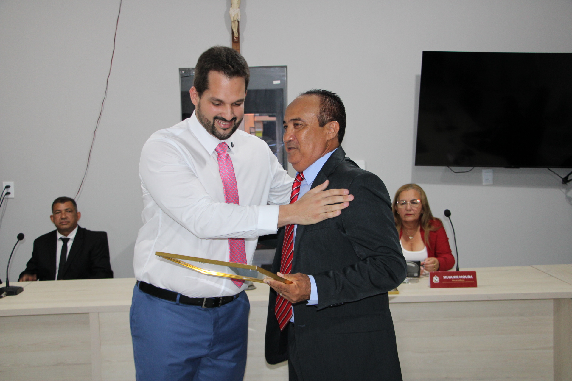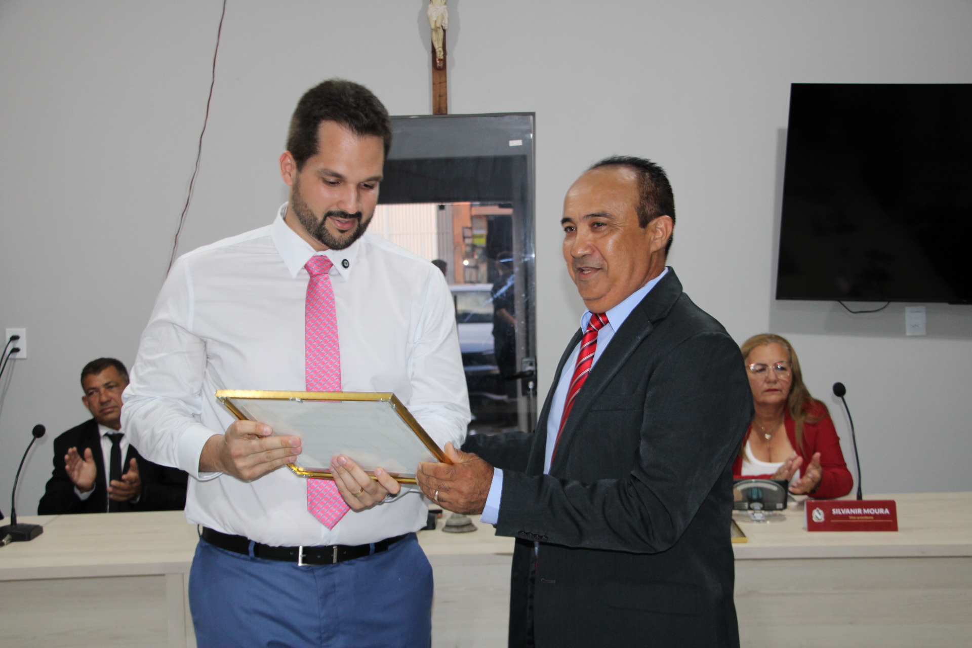 A sessão solene foi conduzida pelo presidente da Câmara, vereador Romulo César, e contou com a presença do prefeito Erivaldo Lopes, do vice-prefeito Giovan Sousa, além dos vereadores Dezim, Silvanir Moura, Cássio Eugênio e Dálua. Amigos, familiares e convidados também prestigiaram a cerimônia, que reuniu autoridades e a comunidade no plenário da Casa Legislativa.