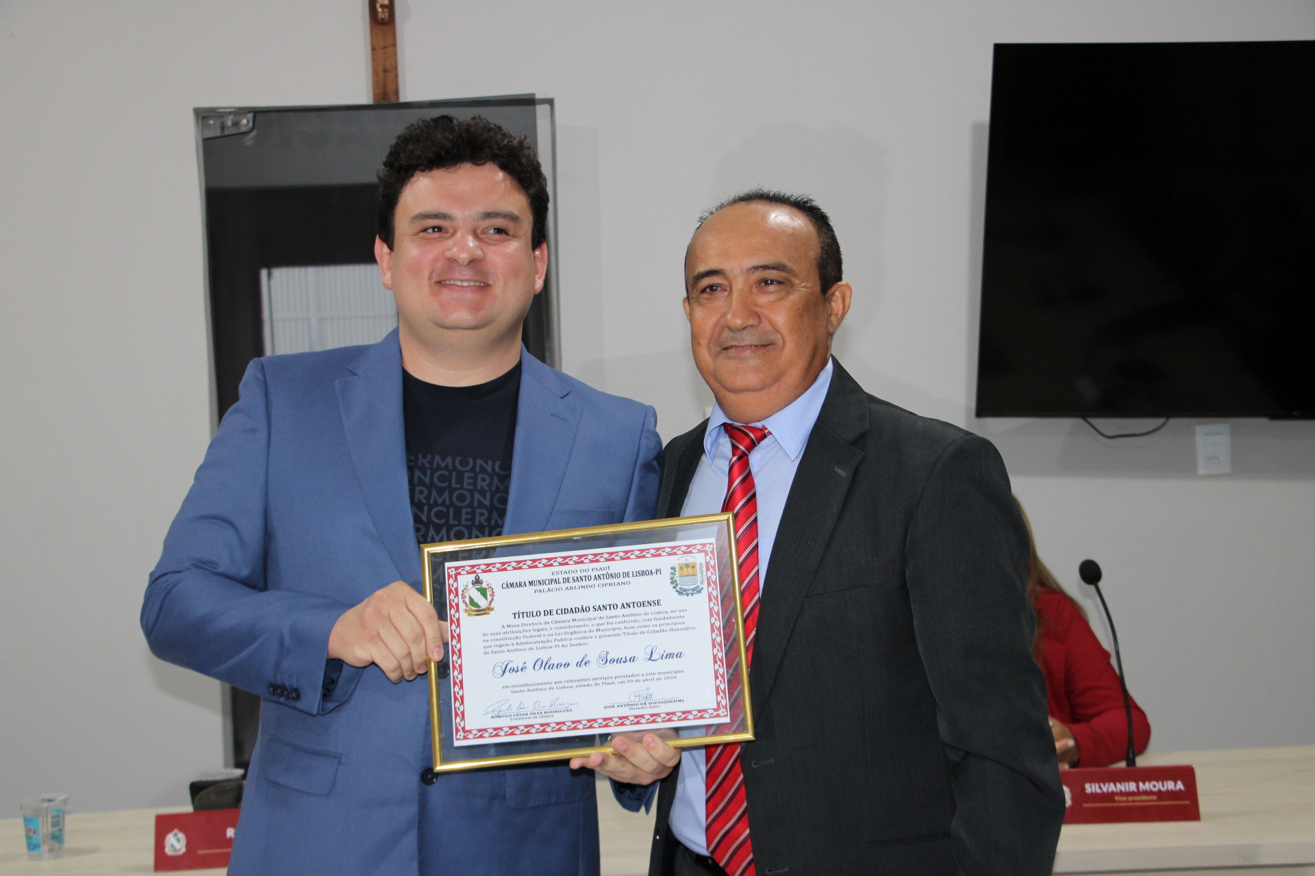 Como parte da programação comemorativa pelos 62 anos de emancipação política de Santo Antônio de Lisboa, a Câmara Municipal realizou, na tarde desta quinta-feira (09), uma solenidade especial para a entrega de três títulos de Cidadão Santo-Antonense.